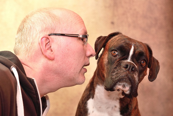 Dieses Herrchen geht sehr vertraut mit seinem Boxer um, auch er gehört zu Kategorie Familienhund. (#03)